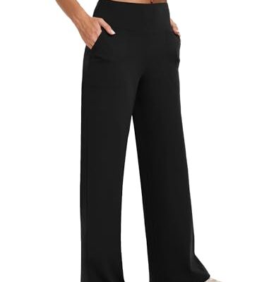 Wide Leg Pants Woman High Waist Yoga Pants with Pockets Loose Stretch Dress Work Sweatpants Casual Lounge