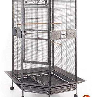 The 2 Color Extra Large Wrought Iron Dome Top offers a sturdy and elegant solution for housing macaws, cockatoos, cockatiels, African greys, Amazons, conures, and caiques. Crafted from durable wrought iron, the black vein finish blends seamlessly with any décor while providing a secure enclosure for large birds.