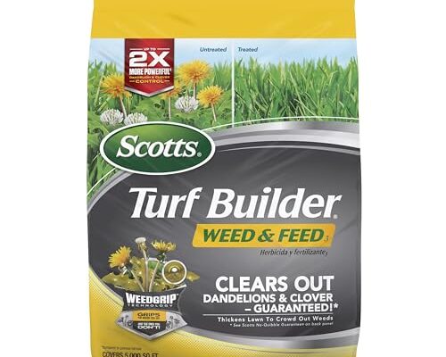 Scotts Turf Builder Weed & Feed3 combines a proven weed killer with a balanced fertilizer to thicken lawns while eliminating more than 50 common weeds such as dandelion, clover, plantain and morningglory. The formula feeds the grass, creating a dense canopy that naturally suppresses future weed growth.