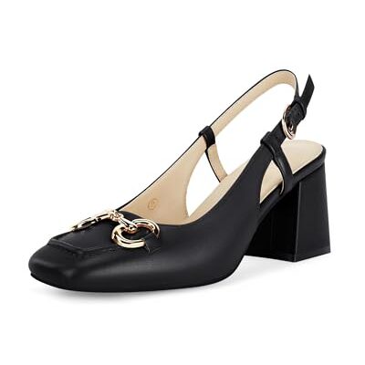 These Women's slingback block heels combine contemporary design with a classic business aesthetic. The closed square toe offers a polished look, while the slip on construction and buckle strap provide a secure fit without sacrificing style. With a moderate 3 inch block heel, the shoes maintain a comfortable stance for long office hours or meetings.