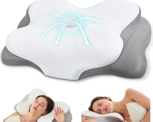 The Cervical Neck Pillow for Pain Relief Ergonomic Side Sleeper Pillow for Sleeping Contour Memory Foam Pillows for Neck Support Cooling Orthopedic Bed Rest Pillow for Back and Stomach Sleepers is designed to eliminate neck discomfort and improve sleep quality. Its butterfly shaped contour cradles the head and neck, evenly distributing pressure and allowing free arm movement for a relaxed night.