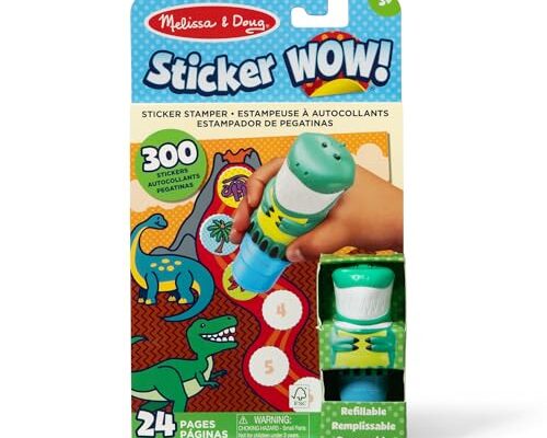Melissa & Doug Sticker Wow!™ 24-Page Activity Pad and Sticker Stamper, 300 Stickers, Arts and Crafts Fidget Toy Collectible Character – Dinosaur Creative Play Travel Toy for Girls and Boys 3+,