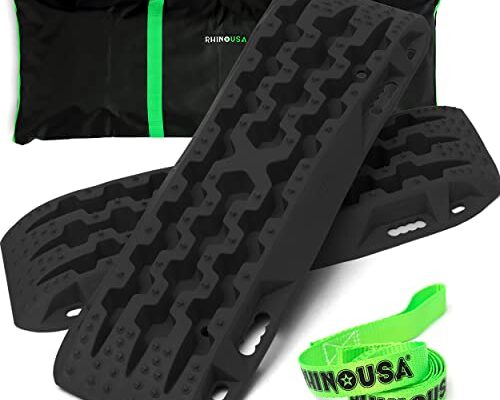 The Rhino USA Off Road Recovery Traction Boards provide a premium solution for 4X4 vehicles, trucks and SUVs. Constructed from UV stable material, the boards are built to endure harsh sunlight and rugged terrain. The package includes two green mats, a heavy duty zipper carry bag and retrieval leashes, making it ready for sand, mud and snow adventures straight out of the box.