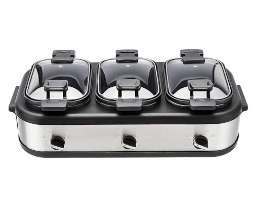 | Amazon Basics Stainless Steel 3 x 2.5 Quarts Triple Slow Cooker, Brushed Stainless Steel |
